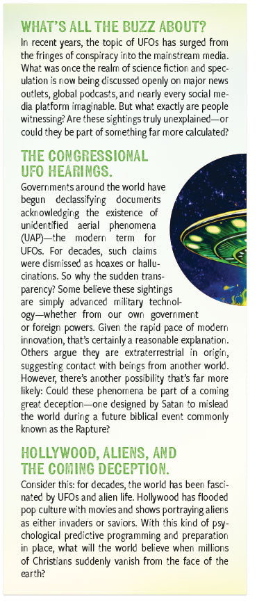 Consider this: for decades, the world has been fascinated by UFOs and alien life. Hollywood has flooded pop culture with movies and shows portraying aliens as either invaders or saviors. With this kind of psychological predictive programming and preparation in place, what will the world believe when millions of Christians suddenly vanish from the face of the earth?