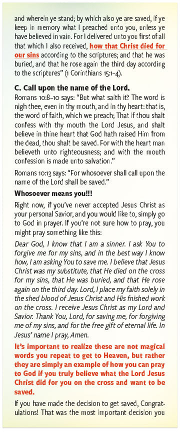 It’s important to realize these are not magical words you repeat to get to Heaven, but rather they are simply an example of how you can pray to God if you truly believe what the Lord Jesus Christ did for you on the cross and want to be saved.