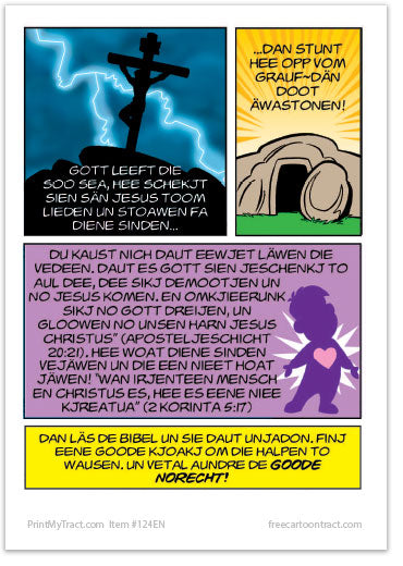This excellent tract can be previewed at the author's website here (link opens in new window). In addition to the print-on-demand languages and quantities available here through PrintMyTract.com, printed copies are in stock and available from Living Waters for the English version.
