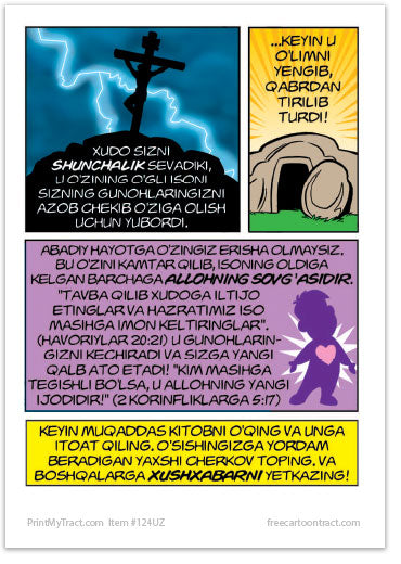 This excellent tract can be previewed at the author's website here (link opens in new window). In addition to the print-on-demand languages and quantities available here through PrintMyTract.com, printed copies are in stock and available from Living Waters for the English version.