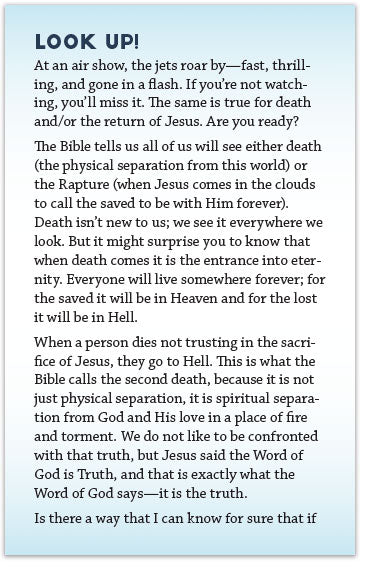 At an air show, the jets roar by—fast, thrilling, and gone in a flash. If you’re not watching, you’ll miss it. The same is true for death and/or the return of Jesus. Are you ready?
