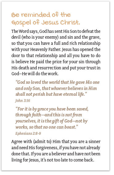 The Word says, God has sent His Son to defeat the devil (who is your enemy) and sin and the grave, so that you can have a full and rich relationship with your Heavenly Father. Jesus has opened the door to that relationship and all you have to do is believe He paid the price for your sin through His death and resurrection and put your trust in God–He will do the work.