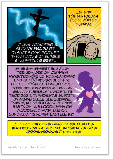 This excellent tract can be previewed at the author's website here (link opens in new window). In addition to the print-on-demand languages and quantities available here through PrintMyTract.com, printed copies are in stock and available from Living Waters for the English version.