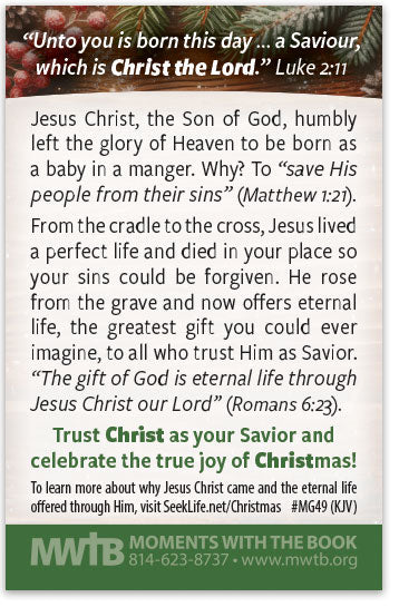 Trust Christ as your Savior and celebrate the true joy of Christmas!