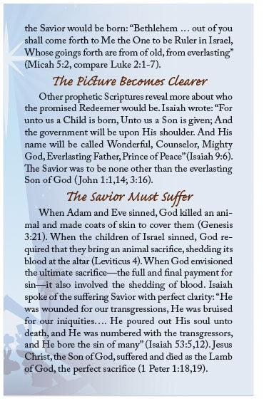 Other prophetic Scriptures reveal more about who the promised Redeemer would be. Isaiah wrote: “For unto us a Child is born, Unto us a Son is given; And the government will be upon His shoulder. And His name will be called Wonderful, Counselor, Mighty God, Everlasting Father, Prince of Peace” (Isaiah 9:6). The Savior was to be none other than the everlasting Son of God (John 1:1,14; 3:16).