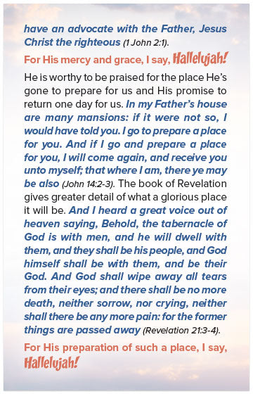 For His preparation of such a place, I say, Hallelujah!