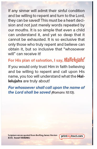 If you would only trust Him in faith believing and be willing to repent and call upon His name, you too will understand what the Hallelujahs are truly about!