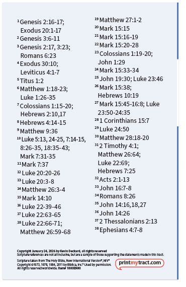 The full text of this tract is shown below in the NIV version. (Do you want to print this tract in a different version than the one listed? Contact us and let us know what you're looking for—we may be able to create the alternate version for you at no charge.)